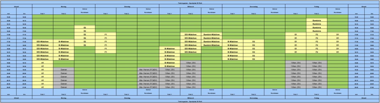 Hier finden Sie die aktuelle Übersicht über die Belegung unseres Sportheims: